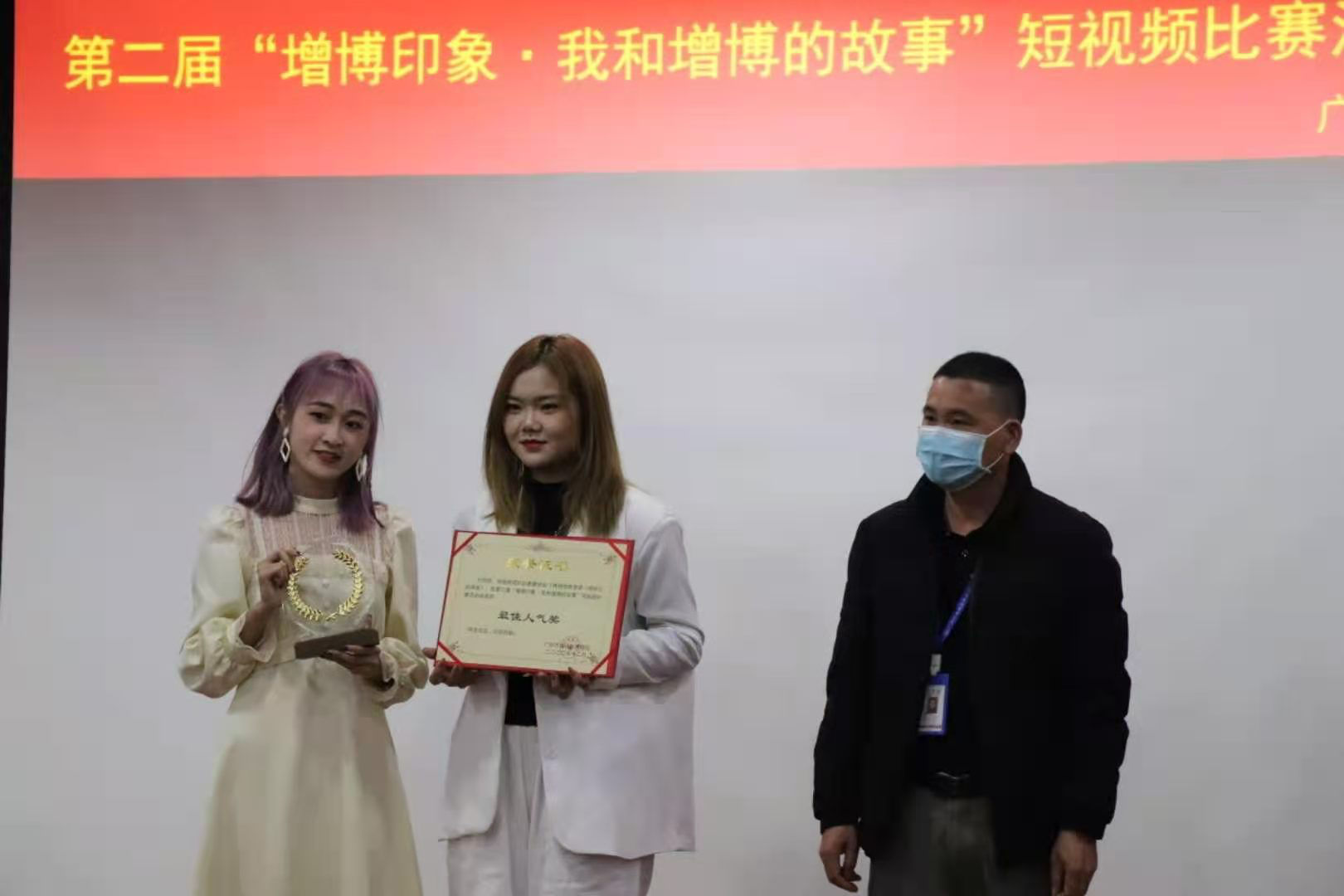 本网讯2020年12月8日下午15点,“增博印象·我和增博的故事”第二届短视频比赛颁奖典礼于增城城市馆内举行,莅临本次颁奖典礼的领导和嘉宾有广东财经大学华商学院伟德国际betvlctor副院长林绍忠,增城博物馆党支部书记、副馆长郭烨明,视频传播系系主任程海涛,视频传播系系主任助理周合强,新闻系专任教师陈嘉玲。