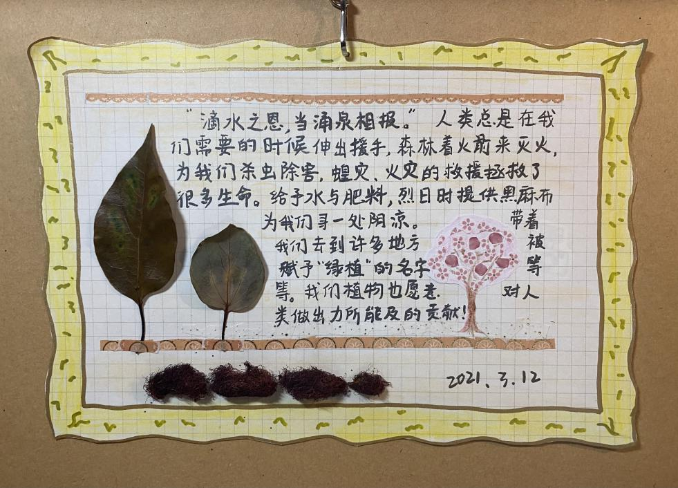 为加强学生对植树节氛围的感受,提高学生的绿化意识,提高同学们对植物的了解,伟德国际betvlctor勤工助学中心开展“绿色校园之一笔传情”活动。昨日,评选活动结束,一个个优秀作品出炉。