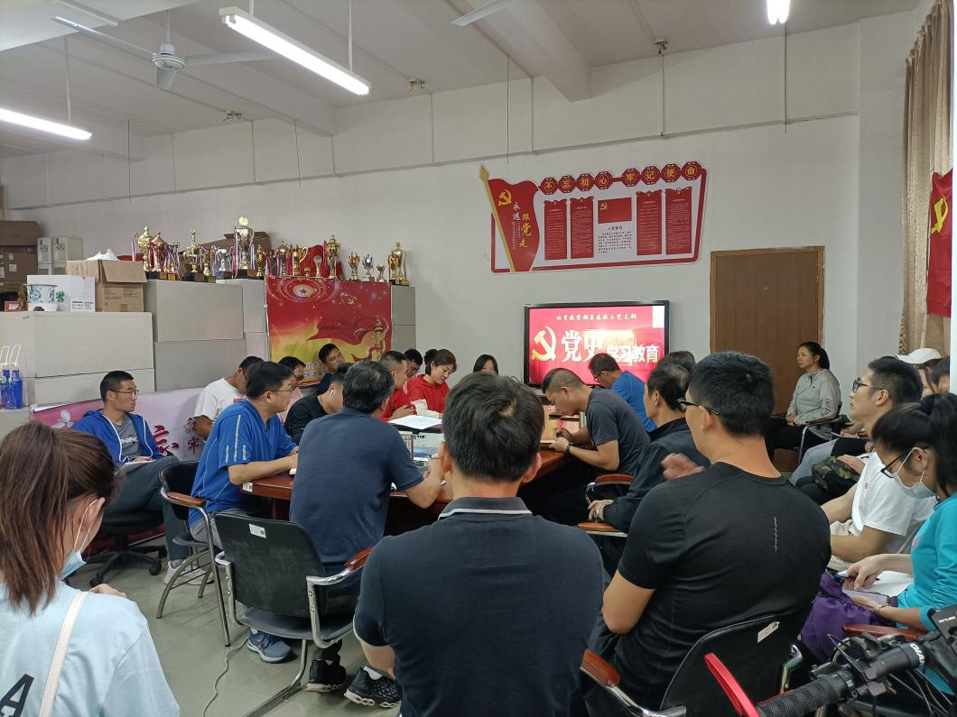 2021年4月20日下午,为贯彻落实党中央在全党开展党史学习教育的精神。体育教学部直属教工党支部召开党员大会,张向群同志在会上强调,支部全体党员应带头认真学习党史,提高政治站位、突出学习重点、强化使命意识、增强学习自觉。结合党史学习,做到办实事、解难题、协调解决师生现实存在的问题。