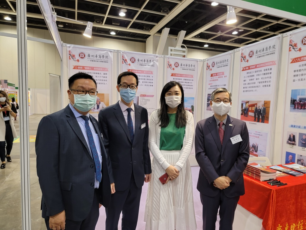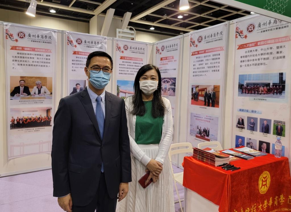 香港教育局局长杨润雄,香港职业训练局主席戴泽棠,香港中华厂商联合会常务副会长卢金荣、副会长吴国安、副会长施荣恒,高宝集团证券执行董事李慧芬等领导和嘉宾们到华商学院展位参观指导,学校代表向领导和嘉宾们介绍了华商学院的办学特色、全国联合招生、香港在校学生情况。领导和嘉宾们对我校的办学理念、办学来取得的各项成果表示肯定和赞赏。