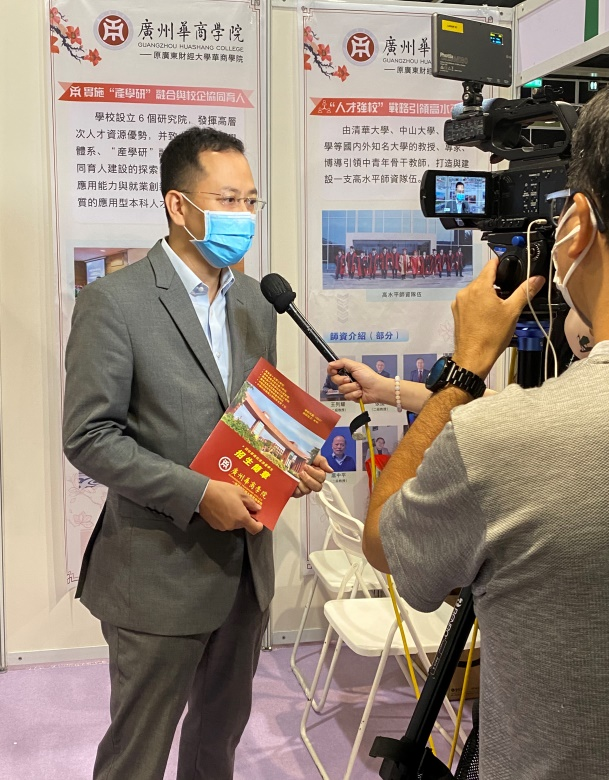 在两天的展会上,学校代表向前来展位咨询的香港学生和家长介绍学校办学特色、招生专业、全国联招考试等信息;香港媒体还对我校进行了专访。