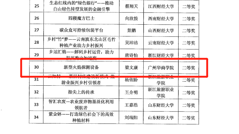在这次比赛中,来自金融学院的梁文康同学和经济贸易学院的杨景同学带领组员参加8分钟的路演答辩。该项目新型火焰检测设备基于IR3点型红外火焰探测器研发的识别算法,能够准确、高效分析出火焰特征,以实现对火焰与干扰源的准确识别。设备依靠高新技术优势,多场景多环境运用实践,预警火灾危险情况,在火灾即将发生时通过对气温周围环境的监管,神经网络进行判断,及时发出预警并做出救助措施高压喷水,安全有效的防止火灾的蔓延,为群众的生活安全保驾护航。2020年年营业额达到1500万以上,受到了CCTV10及龙华日报等媒体的相关报道。