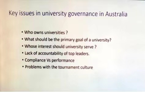 谭安杰教授从历史背景、政府教育体系管理制度、教学培养方案等方面的内容介绍了澳大利亚高等教育体系的概况,并结合澳洲高校的实例和大量的统计数据探讨了大学治理的问题和澳大利亚教育体系的利弊。谭安杰教授认为高等教育体系治理的重心在于政府管理层的要求和引导,政府有关部门应通过监督教育体系管理层来达到预期的目标。他对比了澳大利亚与中国在高等教育体系和大学治理方面的异同。谭教授把澳大利亚大学内各部门的职责从商业的角度巧妙有趣的描述出来,讲座内容丰富,现场气氛活跃。