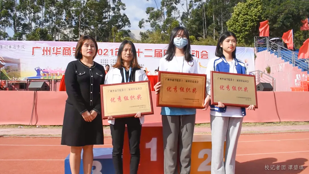 由裁判长顾伟农宣读第十二届田径运动会成绩,排名前三的分别是:第一名四会校区代表队,247.5分;第二名会计学院代表队,155分;第三名数据科学学院代表队,102.5分。第四名至第第八名则分别是管理学院代表队、继续教育学院代表队、文学院代表队、 健康医学院代表队、伟德国际betvlctor代表队。