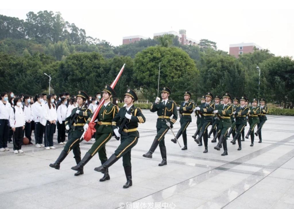 为深入开展爱国主义教育,弘扬民族精神,倡导和平友好理念,营造牢记历史、不忘过去,珍爱和平、开创未来的氛围,培养华商学子勿忘历史、牢记使命的爱国素养,学校团委于2021年12月13日7:30分别在增城校区中央图书馆以及四会校区操场同步举行国家公祭日哀悼仪式。国旗护卫队的旗手们迈着坚定的步伐,高举着鲜艳的五星红旗,彰显着新时代青年的英气。伴随着《义勇军进行曲》以及全体师生们的注视下,五星红旗冉冉升起,升至杆顶迎风飘扬,随后在全体师生的默哀中,缓缓下降三分之一。