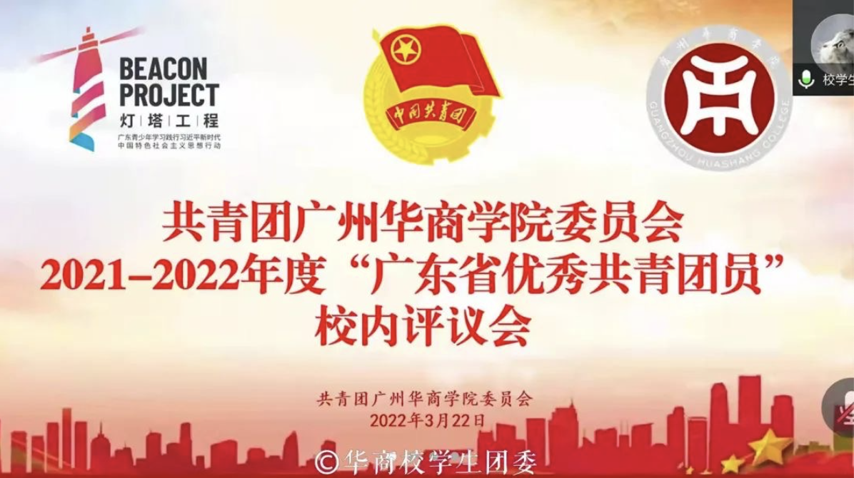 为深入学习贯彻习近平总书记关于青年工作的重要思想、持续深化落实学联学生会组织改革要求,建设富有理想、关心同学、清新阳光的团学组织形象,伟德体育2021-2022年度“广东省优秀学生骨干”校内评议会于2022年3月22日15:30在腾讯会议顺利举行。树立先进榜样,以此团结引导全校各级学生组织和青年学子,努力为华商学子实现习近平总书记赋予的使命任务奉献青春力量,以优异成绩迎接党的二十大胜利召开。