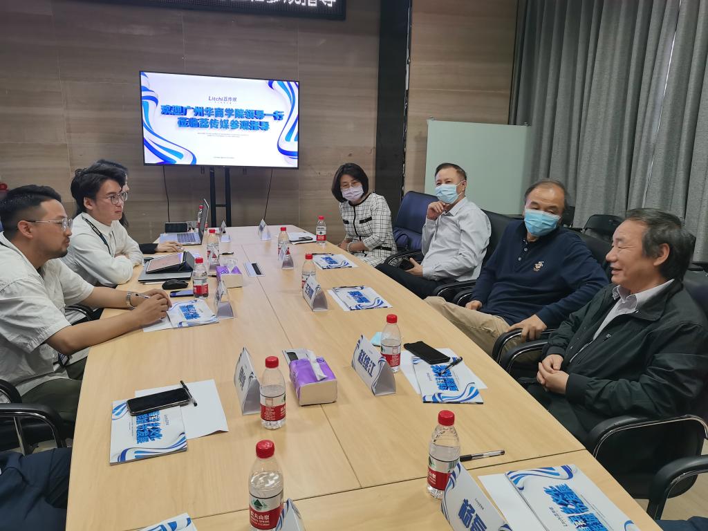 随后,王列耀副校长一行走访广州荔智科技文化传媒有限公司。公司董事长石子豪先生对王列耀副校长一行表示欢迎,并详细介绍企业的发展状况。据悉,广州荔智科技文化传媒有限公司2019年创立,是广州市35家重点党建互联网企业之一。以“传播荔乡文化,赋能城市发展”为使命,以“深耕增城本土,面向全网”为宗旨,致力于构建本地以资讯、社交、电商、直播、人力资源以及IP互动等互联网城市生态。