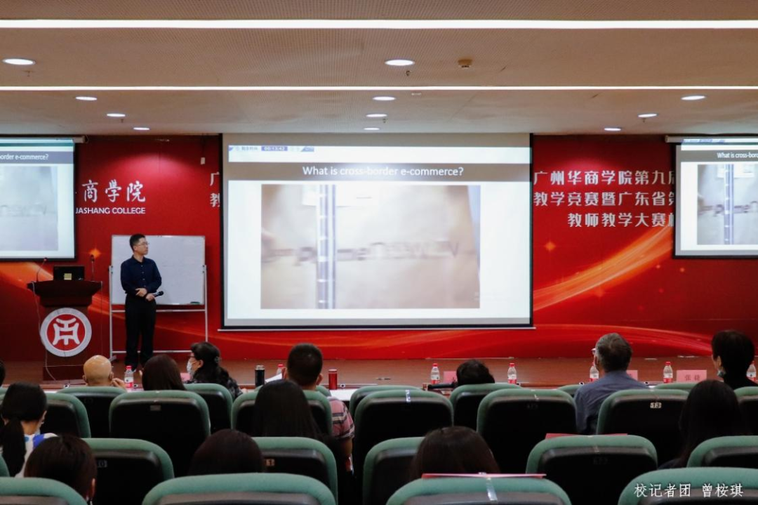 围绕跨境电子商务英语的课程内容,周国辉老师以视频导入课堂,采用双语教学模式,通过小组展示的方式与同学进行互动,加深同学对课堂知识的记忆和理解,提升课堂活跃度,并制定阶段性任务,保障学生学习的连续性,获得现场评委的一致好评。