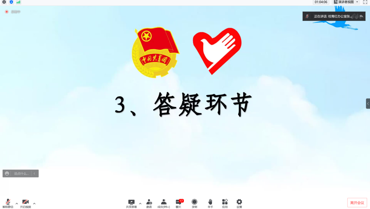 习近平总书记曾在全国高校思想政治工作会议上指出:“要鼓励高校学生把视线投向国家发展的航程,把汗水洒在艰苦创业的舞台,到基层去、到西部去、到祖国最需要的地方去,做成一番事业、做好一番事业”。为响应党和国家的号召,广泛动员我校2022届毕业生积极到祖国的西部、山区贡献青春力量。5月16日晚,我校团委在腾讯会议举办“2022年度‘振兴乡村,不负青春’西部(山区)计划”宣讲会。党委宣传部部长、校团委刘苗书记,团省委—志愿者行动指导中心倪晓奇老师,校团委陈巧巧老师,校团委杨图珍老师以及各学院学生代表近两百人收看了此次宣讲会。