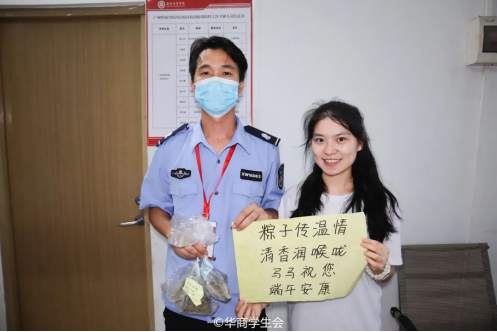 活动现场,络绎不绝,欢声笑语,粽香四溢。活动期间,党委宣传部部长、校团委刘苗书记来到增城校区活动现场,为师生们赠送大礼包。校学生会的同学还为学校里各个工作岗位上辛勤付出的工作人员送去节日祝福。师生、教职工们纷纷在朋友圈里晒出免费领取的端午节大礼包,晒出满满的幸福感。校团委共为师生准备了2000多份端午礼包。