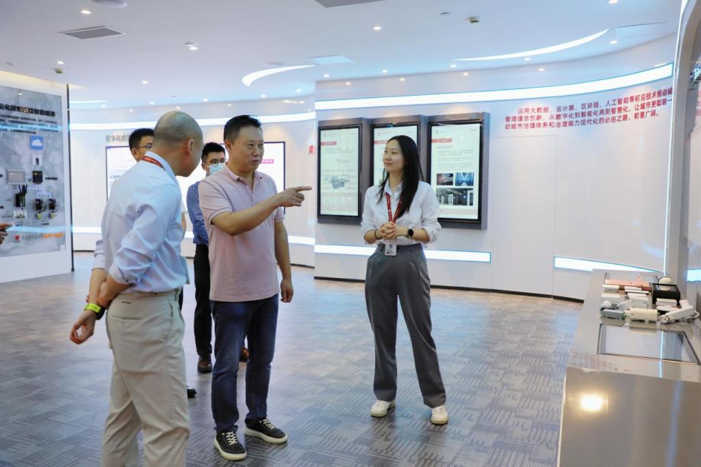 彭秀东教授一行在苏总的陪同下参观了信科集团数字化指挥中心的数字化转型进程、新一代信息技术应用、数字化成果展示等展区。随后,双方就华商数研院如何与信科集团展开合作进行了座谈。