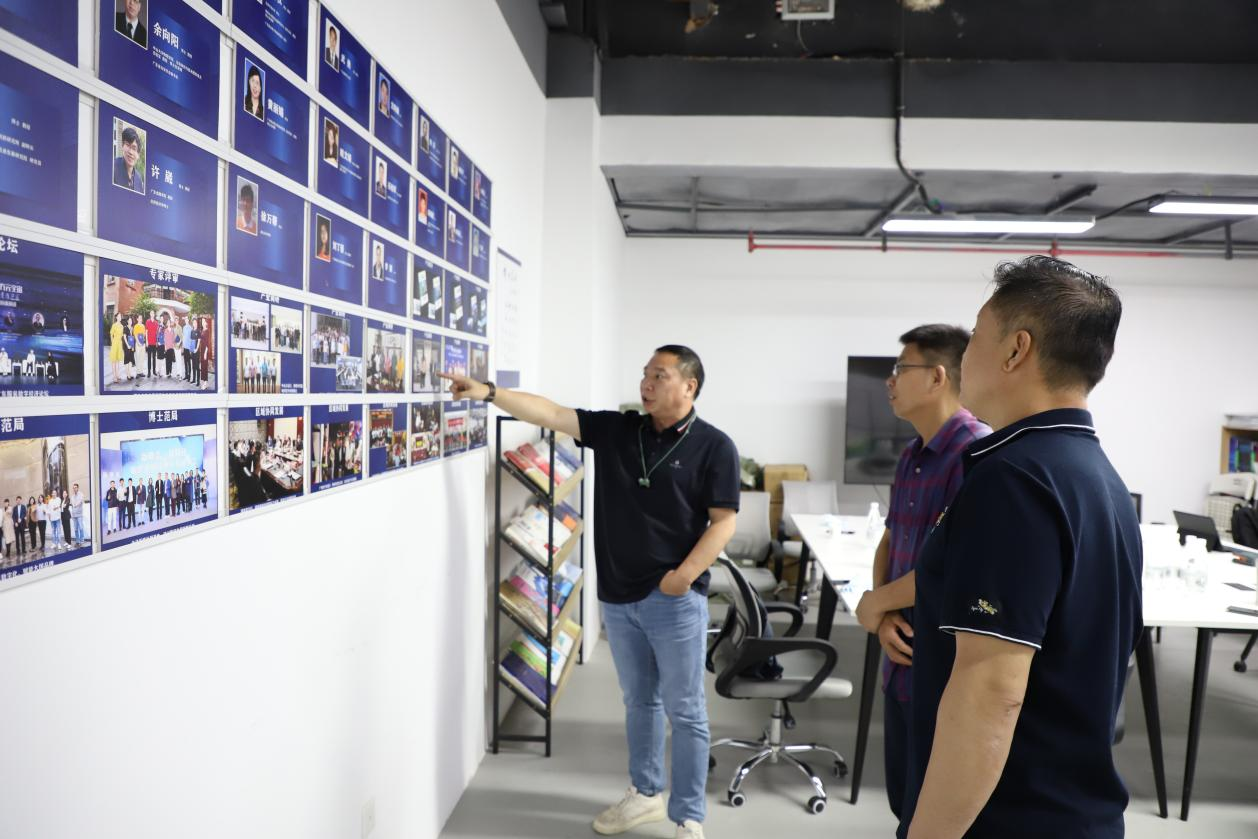 随后,广东省全域产业创新研究院院长文丹枫博士陪同彭秀东教授一行参观研究院目前工作环境,双方就华商数研院如何与广东省全域产业创新研究院展开深度合作进行了座谈。
