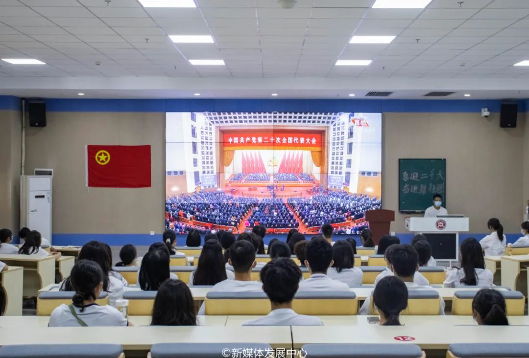 10月16日上午10时,中国共产党第二十次全国代表大会在北京人民大会堂开幕,习近平总书记代表第十九届中央委员会向大会作报告。这举世瞩目的盛会牵动着广大华商学子的心。我校团委组织各二级学院团总支书记、学生会指导老师、团学学生骨干、青马班学员、团支书以及团员青年代表分别在增城校区励志楼C408和四会校区8号楼108、6号楼201教室集中收看中国共产党第二十次全国代表大会开幕会,认真聆听学习习近平总书记代表第十九届中央委员会向党的二十大所作的报告。同时,各二级学院团总支组织学生骨干集中收听收看,广大华商学子积极主动进行线上线下学习。