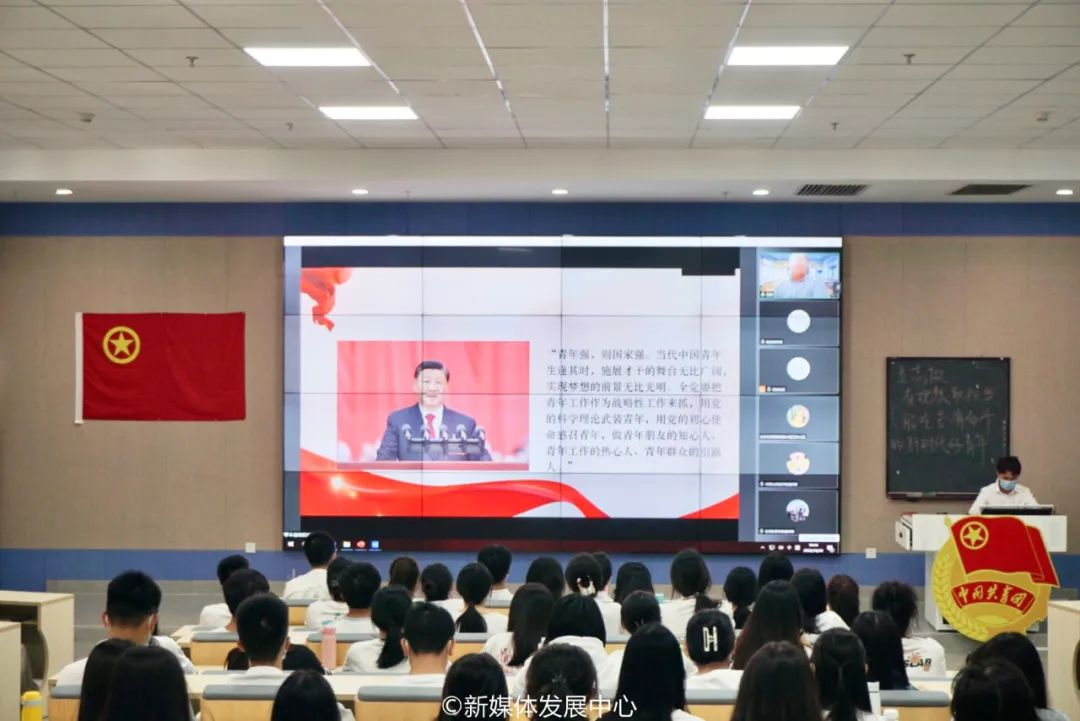 团支书培训班第一次授课以线上线下相结合的方式组织开展。校团委书记陈刚老师带领全体团支部书记深入学习习近平总书记在中国共产党第二十次全国代表大会上作的报告。陈刚老师围绕党的二十大会议主题、十年来党和人民事业具有深远意义的三件大事、“牢牢把握五个重大原则”“五个必由之路”“中国式现代化的本质要求”等方面开展党的二十大报告学习辅导。他鼓励华商青年们要时刻牢记“三个务必”,铭记党的初心使命,坚定理想信念,筑牢精神之基,厚植爱国情怀,坚定不移跟党走,以实现中华民族伟大复兴为己任,增强做中国人的志气、骨气、底气,不负时代,不负韶华,不负党和人民的殷切期望,让青春在全面建设社会主义现代化国家的火热实践中绽放绚丽之花。