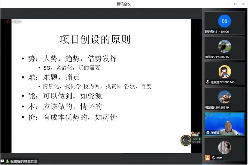随后,张耀辉教授为我们讲解项目创设的“势、难、能、本、价”五点合一原则,以此明确价值主观的概念原则。通过张耀辉教授的讲解,同学们更加深刻地认识到了平时要养成独立思考的行为习惯,打破旧有思维模式并积极地用崭新的思想看待事物。