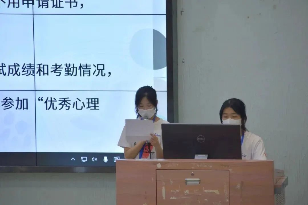 随着班规宣读环节的结束,心委培训正式开始。第一场培训由学生处心理健康教育与辅导中心的吴连宁老师(增城校区)和陈苗琳老师(四会校区)主讲。