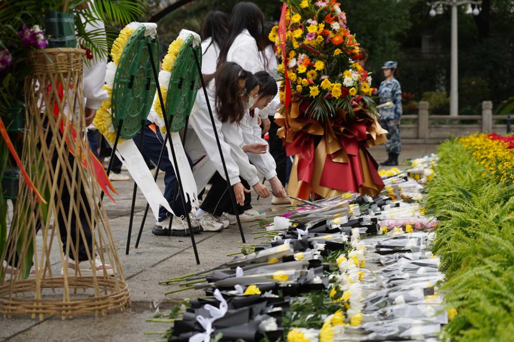 随后,师生们缓缓走向烈士纪念碑向先烈敬献鲜花,寄托沉痛哀思,表达深切的缅怀与无限的敬仰之情。