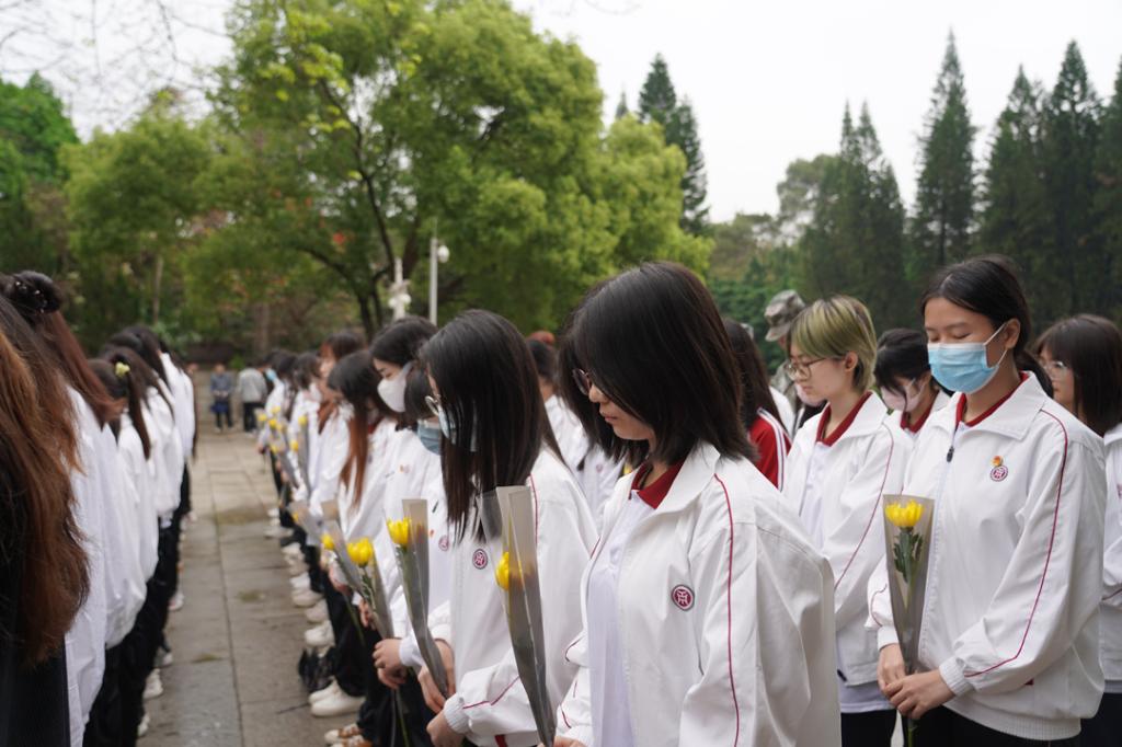 鲜花寄哀思,初心传后人。烈士墓碑前,全体师生们肃立,向烈士行鞠躬礼,并默哀一分钟,向革命烈士致以崇高的敬意和深切的缅怀。