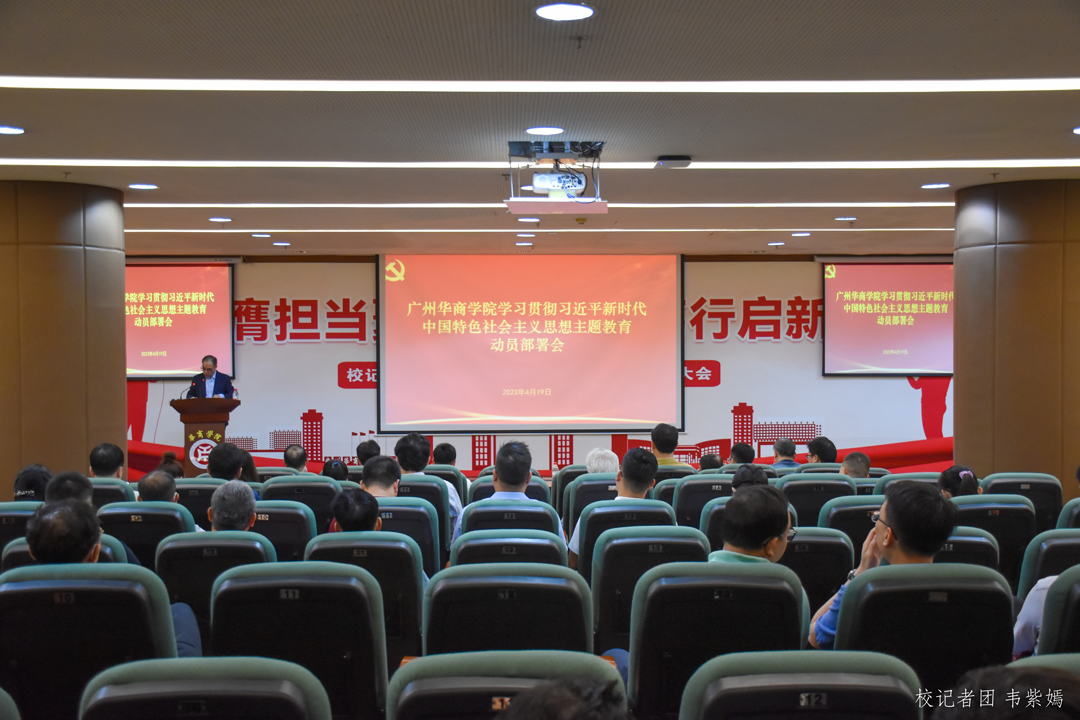 为深入学习贯彻习近平总书记在中央主题教育工作会议上的重要讲话精神,以实际行动坚定拥护“两个确立”,坚决做到“两个维护”,贯彻落实中央及省委关于开展主题教育的部署要求,4月19日,伟德体育学习贯彻习近平新时代中国特色社会主义思想主题教育动员部署会在增城校区中央图书馆报告厅召开。学校党政领导班子成员、全体中层干部、全体二级党组织负责人参加会议。本次会议由伟德体育党委副书记、执行校长郭银华主持。
