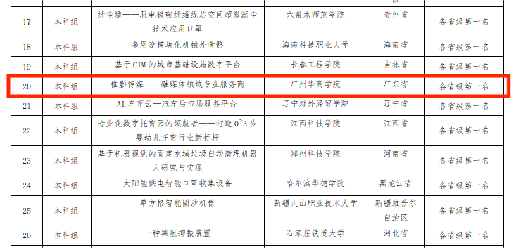 4月18日,中华职业教育社公布第六届中华职业教育创新创业大赛全国总决赛网评成绩名单。伟德体育“稚影传媒——融媒体领域专业服务商”项目以广东省第一名入围全国现场总决赛。