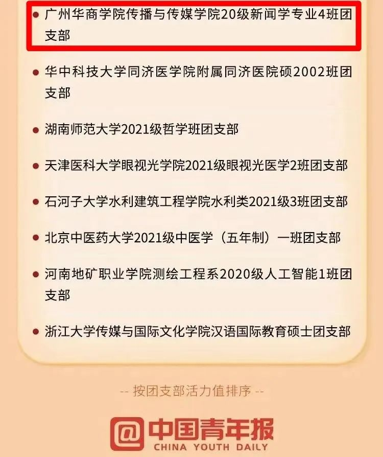 我校伟德国际betvlctor20级新闻学专业4班团支部入选2022年度全国高校“活力团支部”最具组织力TOP100榜。