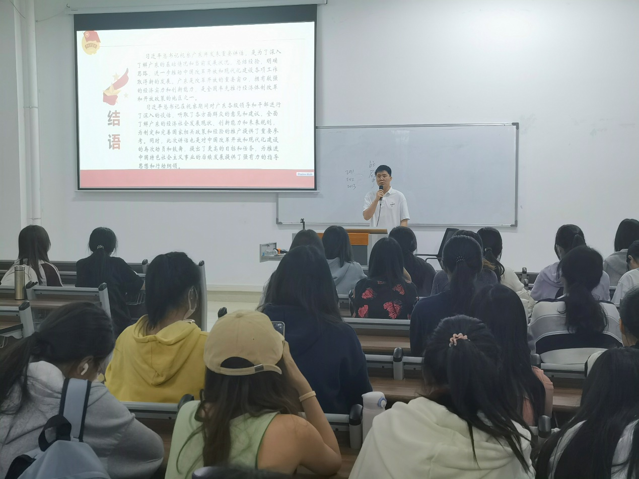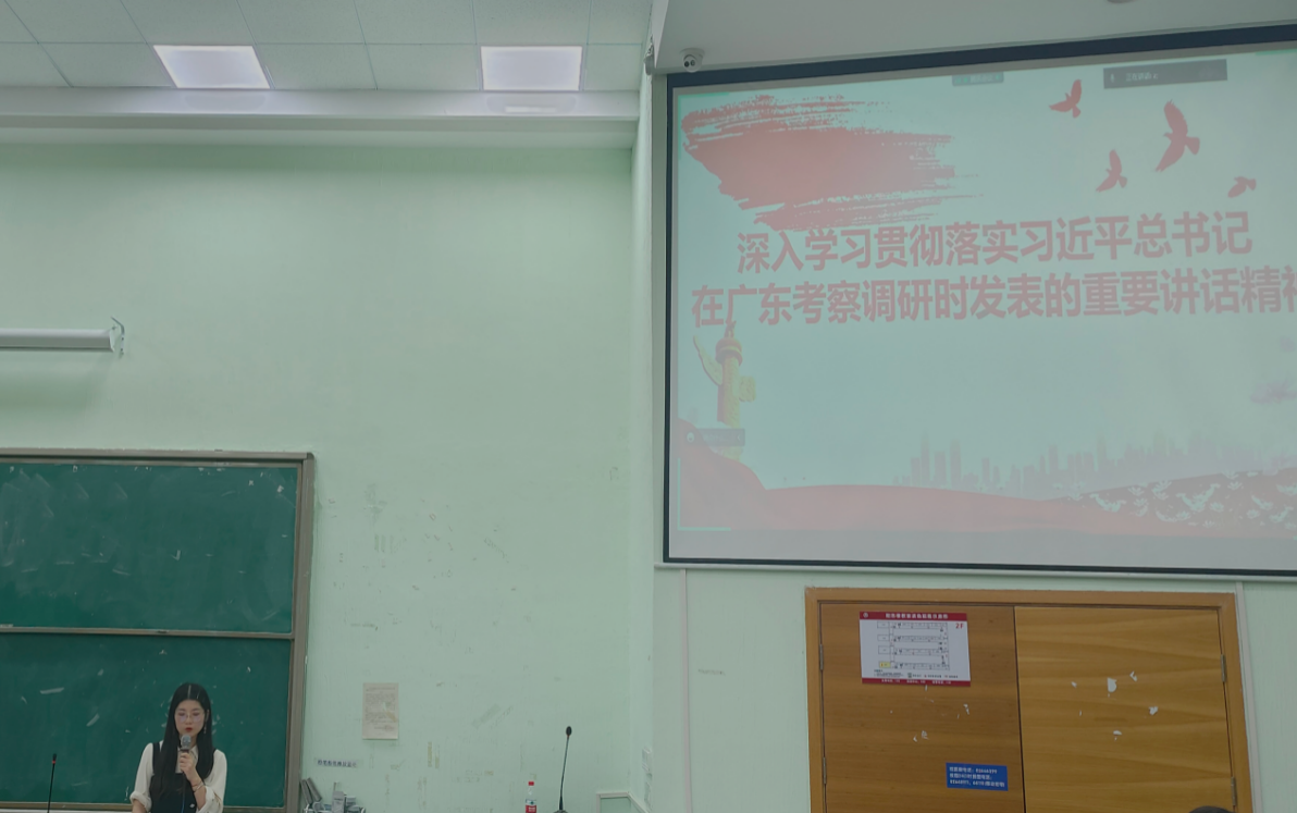 4月25日、26日,金融学院团委张文杰书记和赵颖祯副书记在增城校区励志楼C104和四会校区8号楼402组织召开“学习贯彻习近平总书记视察广东重要讲话重要指示精神”主题团课,带领金融学院团委成员及各团支部学生骨干共同深入学习,将理论学习传达贯彻落实到每一位青年团员。习近平总书记的谆谆教导,催人奋进,引发金融学院广大团员青年热烈反响。大家纷纷表示,一定学习贯彻好习近平总书记视察广东重要讲话重要指示精神,深入学习领会习近平新时代中国特色社会主义思想的科学体系、丰富内涵、精神实质、实践要求,在学思践悟中感悟思想伟力,砥砺初心使命,站稳人民立场,自觉将个人的成长成才与社会发展和时代主题紧密结合,以实干担当推动广东在中国式现代化建设中走在前列。