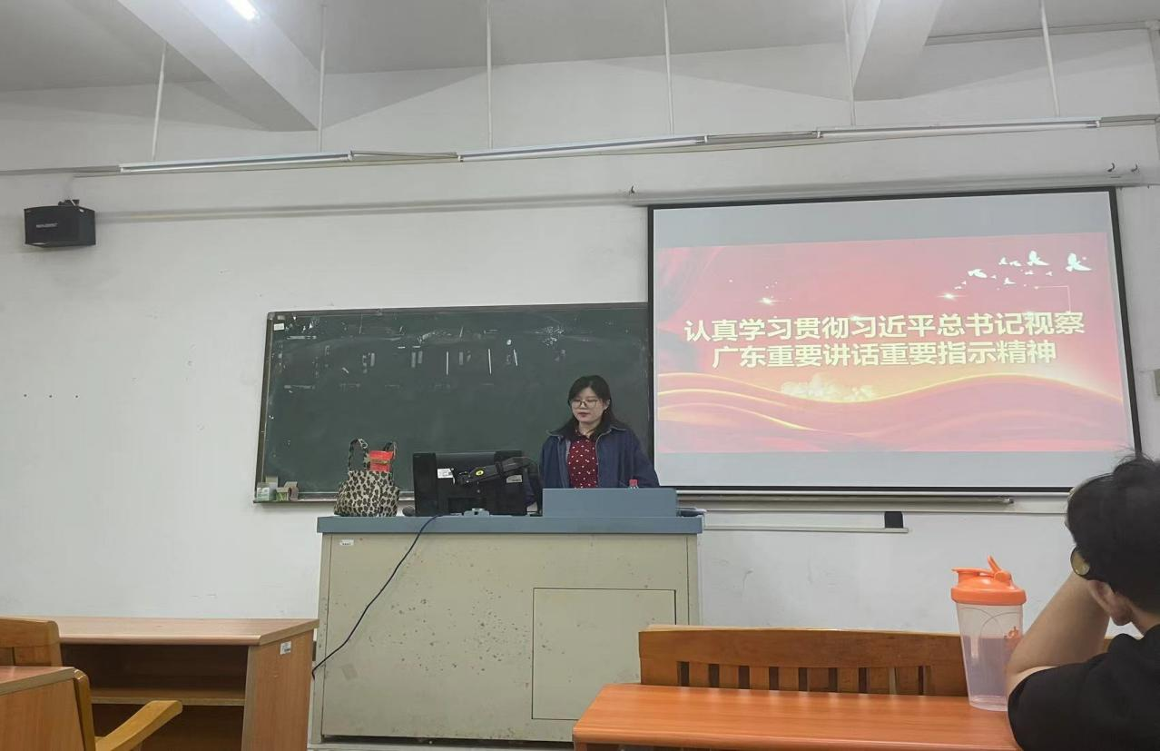 4月25日,数据科学学院第二党支部书记、团委书记谢嘉希在启智楼为数科青年团员传达习近平总书记视察广东重要讲话、重要指示精神。四会校区,团委副书记王怡时为22级学生在6号楼402组织开展认真学习习近平总书记视察广东的重要讲话、重要指示精神学习会,传达学习习近平总书记视察广东重要讲话、重要指示精神。两位老师表示,我们要学习习近平总书记对广东人民的关心关爱、对广东工作的勉励指导,把习近平总书记这次视察的重要讲话、重要指示,同习近平总书记对广东系列重要讲话、重要指示一体学习领会、整体贯彻落实,深刻领悟“两个确立”的决定性意义,增强“四个意识”、坚定“四个自信”、做到“两个维护”,坚定听党话、跟党走,锤炼本领,修炼品德,守正创新、苦干实干,成长为新时代的奋进者、开拓者、奉献者。