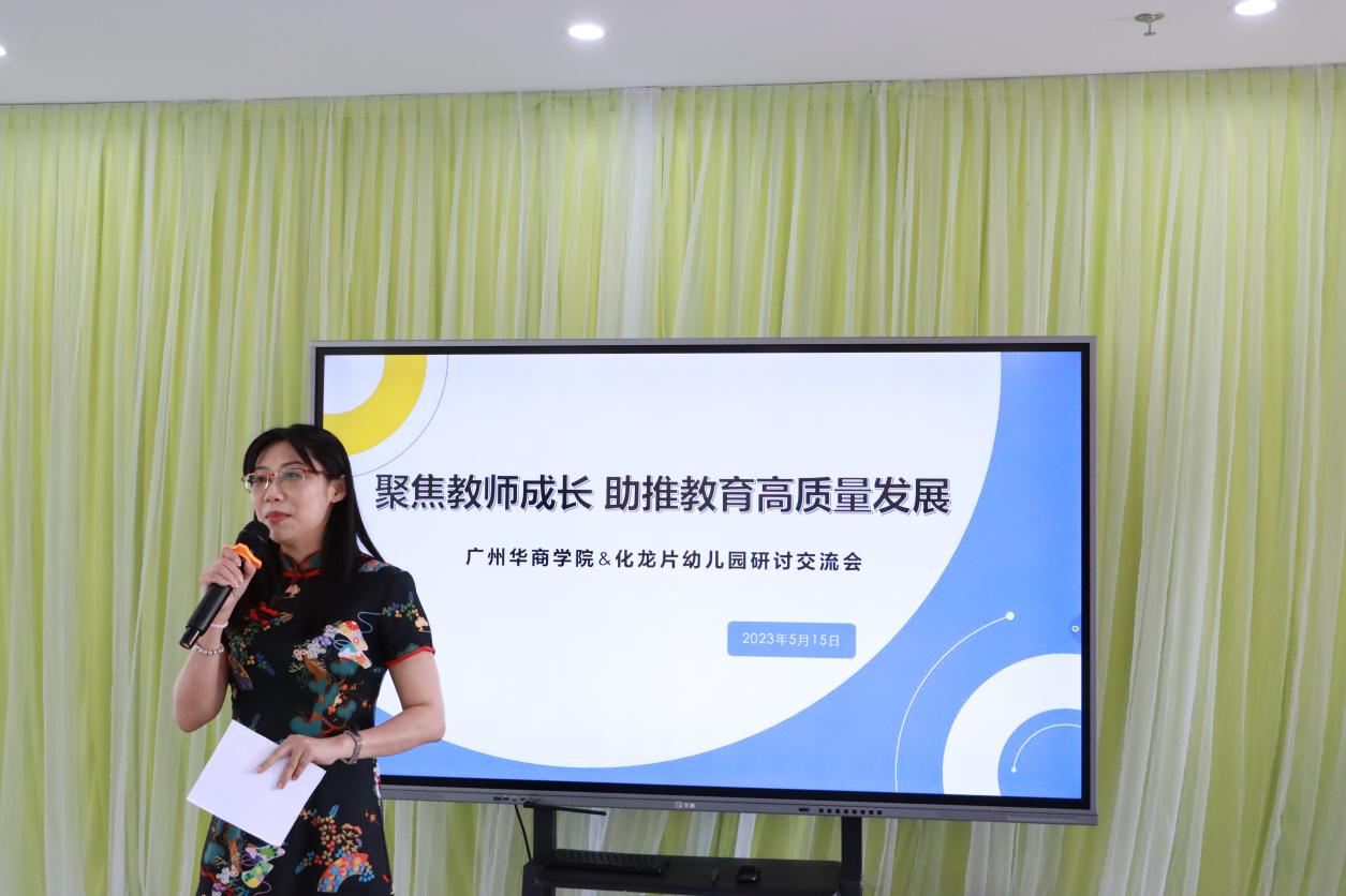 支戈壁副校长讲话。她首先对园所的大力支持表示由衷的感谢,也愿双方能共同落实共同聚焦教师成长,助推教育高质量发展,并表示期望在未来与化龙片区幼儿园能取得更多更愉快的合作。