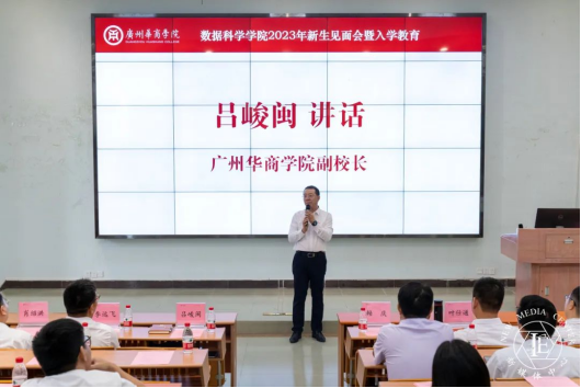 伟德体育副校长、数据科学学院院长吕峻闽教授讲话。吕校介绍了伟德体育的办学历史、办学理念,讲述了华商教育集团的发展规模、发展质量与水平,指出伟德体育正在为实现建成国内一流大学的目标而努力奋斗。随后,吕副校长向新生提出了三个问题,分别是为什么选择华商?来华商做什么?接下来要怎么做?并结合联合国教科文组织提出的“学会求知”“学会做事”“学会共处”“学会做人”等给出了问题的答案。他强调,作为大学生,在今后的大学生活里,希望同学们能努力提高自身创造力,学会独立思考,学到专业的技术,提高自己的综合素质和品德修养,才能成为对社会有用的人才,成为社会主义建设者和接班人。他给全体新生提出了四点要求:自信、自强、自律和自学。