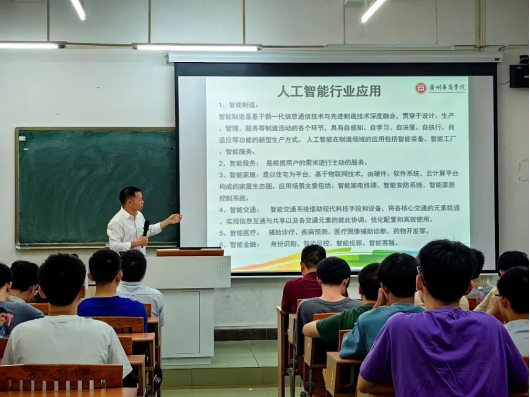 洪绍勇老师则详细介绍了人工智能专业的培养方案、项目制教学特色、实践教学条件、学科竞赛、校企合作、培养成果等情况,帮助同学们充分了解本专业学习所需技能、就业前景及未来的工作领域。他希望同学们要树立远大的理想,制定适合自己的学习计划,掌握走向社会的知识和技能。