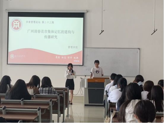 最后,主持人代表全体同学和老师对廖教授的精彩演讲表示衷心的感谢,讲座在同学们热烈的掌声中落幕。至此,本次“广州迎春花市集体记忆的建构与传播研究”主题讲座圆满结束,希望同学们能够通过本次讲座加深对论文基础理论研究的理解,开拓思维,让我们共同期待下一期的华商管理论坛。