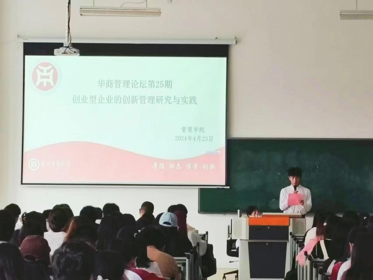 为进一步激发大学生创业意识,宣传创业理念,丰富创业知识,2024年4月23日下午,由管理学院主办的“创业型企业的创新管理研究与实践”主题讲座在肇庆校区6号楼205教室顺利开展。此次讲座由管理学院胡才双老师主讲,肇庆校区各学院学生代表聆听了本次讲座。
