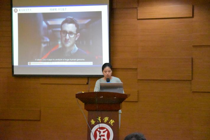 为了让大学生了解新质生产力的内涵、发展及影响力,用英语讲好中国发展新质生产力的故事,自2024年4月以来,伟德体育国际学院联合国际交流与合作处举办“聚焦新质生产力,助力高质量发展”第二届英语配音大赛,经选手准备配音视频、初赛遴选,2024年5月28日,决赛在广州校区图书馆学术报告厅举行。国际交流与合作处处长王文忠、国际学院院长回雁雁、外国语学院副院长杜秀君、国际学院直属党支部书记杨李军、加纳籍教师Frank Larbi博士、巴基斯坦籍教师Aneela Qadir博士以及来自国际学院、外国语学院、文学院、健康医学院、管理学院、人工智能学院、经济贸易学院、教师教育学院的120多位大学生现场观摩了决赛。