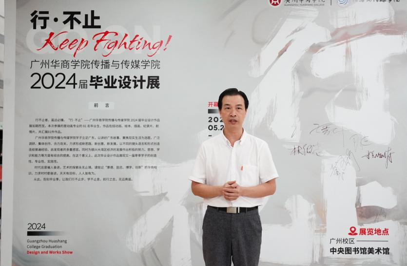 视频传播系系主任戴金玲老师在致辞中向各位嘉宾、师生的到来致以欢迎与感谢,并对同学们在作品创作上的成长与表现表示高度肯定,对同学们即将完成学业致以最诚挚的祝福。戴老师表示,大家从怀揣梦想踏入艺术殿堂的新生逐渐成长为专业人才,今天展出的每一件作品都凝聚着同学们的智慧与汗水。立足广东,以讲好广东故事、聚焦现实生活为方向,不断突破自我,希望毕业生们在未来用画笔和镜头展现更多独特的创意。