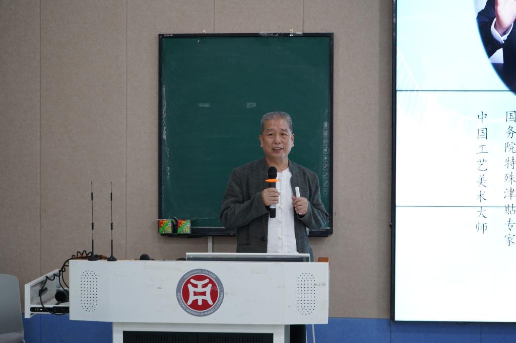 在讲座的互动环节,师生们纷纷踊跃提问,张炳光大师一一解答。他还表示,艺术家不仅要有精湛的技艺,还要有丰富的文化内涵和独特的艺术审美,时刻保持对市场的敏锐洞察力,了解最新的时尚趋势,将传统文化中的精髓融入设计中,使作品既有现代感又不失文化底蕴。