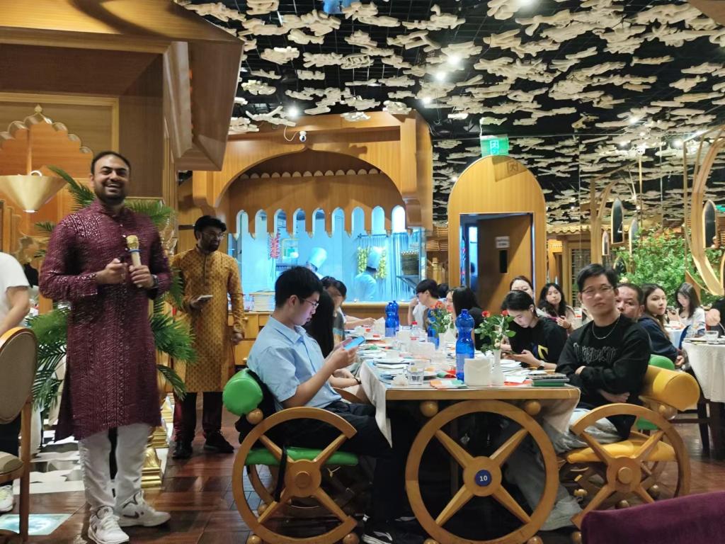 为进一步拓宽大学生的国际视野,丰富校园多元文化氛围,继举办了美国、英格兰、土耳其、巴基斯坦、波兰、加纳、尼日利亚、菲律宾等国家(地区)的国际文化交流系列活动后,2024年11月1日,伟德体育国际学院、国际交流与合作处联合举办的第十期“探秘异域文化,增进文明互鉴”国际文化交流系列活动之印度文化分享会在Little Papa餐厅举行。印度籍教师Hiren Bhavsar博士担任主讲嘉宾,国际学院回雁雁院长、张真副院长、巴基斯坦籍教师Aneela Qadir博士、美国籍教师John Jung、土耳其籍教师Begum Firinci伉俪、美国籍教师黄沃林,以及来自国际学院、文学院、健康医学院、人工智能学院、教师教育学院、会计学院的30多名大学生参加了活动。