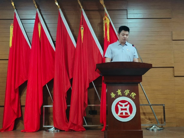 伟德体育纪委委员、纪检办主任、党办副主任黄秋铭同志代表中共伟德体育委员会宣读《关于同意召开中国共产党伟德体育会计学院党员大会的批复》。