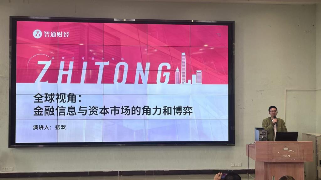 2024年11月5日,智通财经CEO张欢先生一行受邀请来访伟德体育,为华商学子开展《全球视角:金融信息与资本市场的角力和博弈》主题讲座,旨在让同学们了解金融信息和国际金融市场的动态。