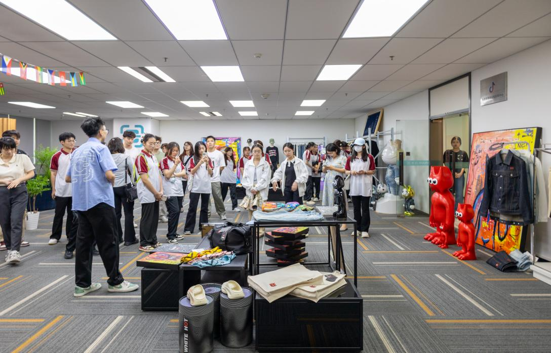 师生园区入驻企业办公区近距离观摩企业实际工作流程,与企业负责人交流行业趋势与岗位需求,进一步明晰职业发展方向。同时,师生通过案例展示与数据可视化平台,系统学习新经济企业的数字化转型路径,并对跨境电商、供应链管理等专业领域展开讨论。