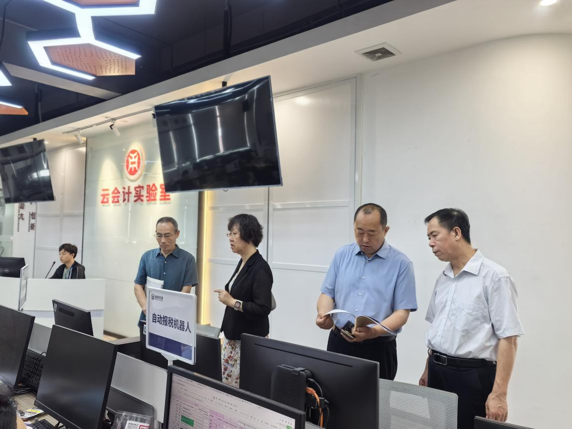 会前,李雪院长一行参观了我校经管类跨专业综合仿真实习平台、金融科技实验平台、大传播实验平台及数智会计与商务服务产业学院。