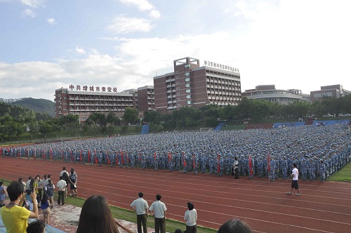 8点整,军训动员大会正式开始。大会由邓基泽副院长主持,待迎过国旗院旗,升了国旗之后,到了各位领导们的讲话。领导们表示对这一届的新生们抱有极大的期望,希望他们可以在烈日下完成这次的军训,也希望他们可以从艰苦中收获对自己有意义的东西。