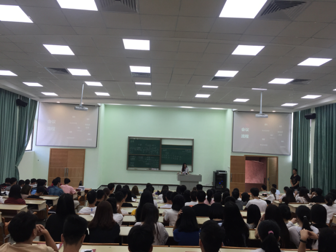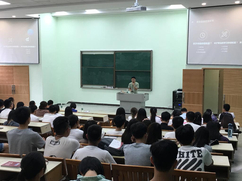 新生见面会在辅导员罗坤贤老师热情洋溢的开场致词中拉开序幕,简明扼要地向新生介绍了学院状况、新生应如何正确树立学习目标,在大学中更好地磨练自己;随后,文学院副院长尹康庄教授发表讲话,他首先代表文学院所有老师欢迎2017级全体新生加入广东财经大学华商学院这个大家庭,并鼓励新生要积极进取,勇于迎接新的挑战;接着,艺术设计系学工副主任彭博娜书记也对同学们提出了具体要求以及对新生们寄托了浓浓的期望;紧跟着,产品设计教研室主任张宪法老师和环境设计教研室张会锋老师上台发言,详细地阐述了各自专业方面的相关知识以及就业情况和前景等;随后,优秀学生代表也先后上台讲话,向新生们介绍了自身的学习和生活各方面经验,并分享了自身的学习体验。师生见面会的最后,进行了新生交流环节,新生们向优秀学生代表对自己的大学生活和学习方面的困惑提出了疑问,师兄师姐们都耐心的回答了问题,并鼓励同学们努力学习,希望在以后在各方面都能取得令人满意的成绩。