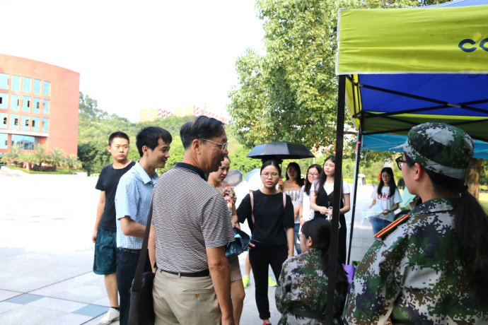 接着,我系主任一行走访了中央广场篮球场军训场地,详细地向教官了解了我系学生的军训情况,针对军训病患伤员情况,特别叮嘱做好学生工作,提前预测军训可能发生的紧急情况,切实保障同学的安全。同时对教官表达了敬意和感激。