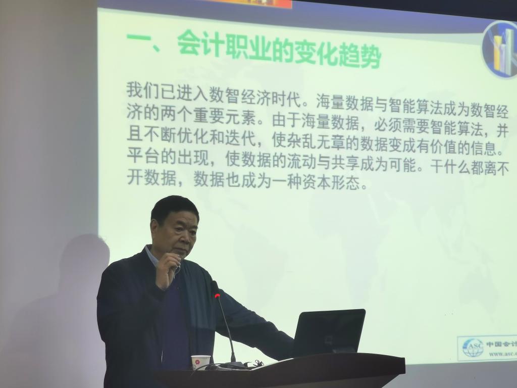 刘永泽教授围绕“未来会计职业规划”的主题,从“会计职业变化的趋势”、“未来的会计岗位”、“未来社会需要的会计人才”三个部分展开叙述。他指出:凡事预则立,不预则废。我们已进入海量数据与智能算法的数智经济时代。智能算法将数据变成有价值的信息,平台的出现,使数据的流动与共享成为可能。数据也成为一种资本形态。数智经济的快速发展和人工智能技术对行业的深度渗透,企业对会计人才的需求发生了巨大变化,会计行业正面临着重大变革。会计的内容、会计的岗位和会计的方法都在发生变化。传统会计核算的内容、核算岗位、人工记账和人工编表的方法已经被计算机、人工智能(财务机器人)替代。会计从业者工作从简单记账核销,转向核算、汇总和分析,转向战略投资和管理。