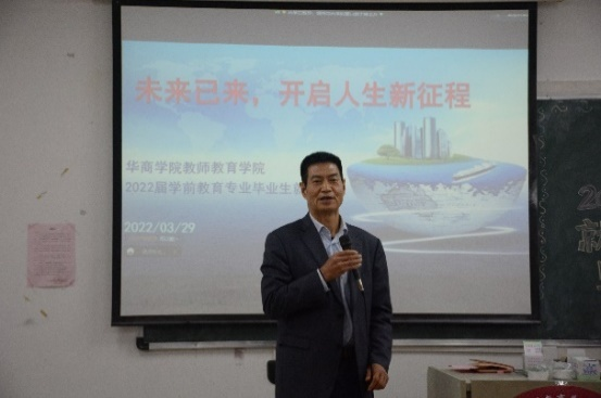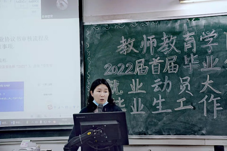 为推动学生更好地就业、全面落实学生就业,同时也是为党和国家输送人才。在之前两次院系就业工作会议的基础上,教师教育学院于3月29日晚在厚德楼C205开展了首届毕业生就业动员大会和毕业生工作会议。本次动员大会由谭建生副院长主持,参加此次会议的领导和老师有:教师教育学院院长王金道、副院长张博、副院长谭建生、党总支副书记学生工作办公室主任彭博娜、团总支学生会书记朱娜、学前教育系系主任李冉冉、毕业生班主任文华玲和赵姗姗、全体辅导员。全体学前教育专业18级学生通过线上线下的形式参加了本次大会。
