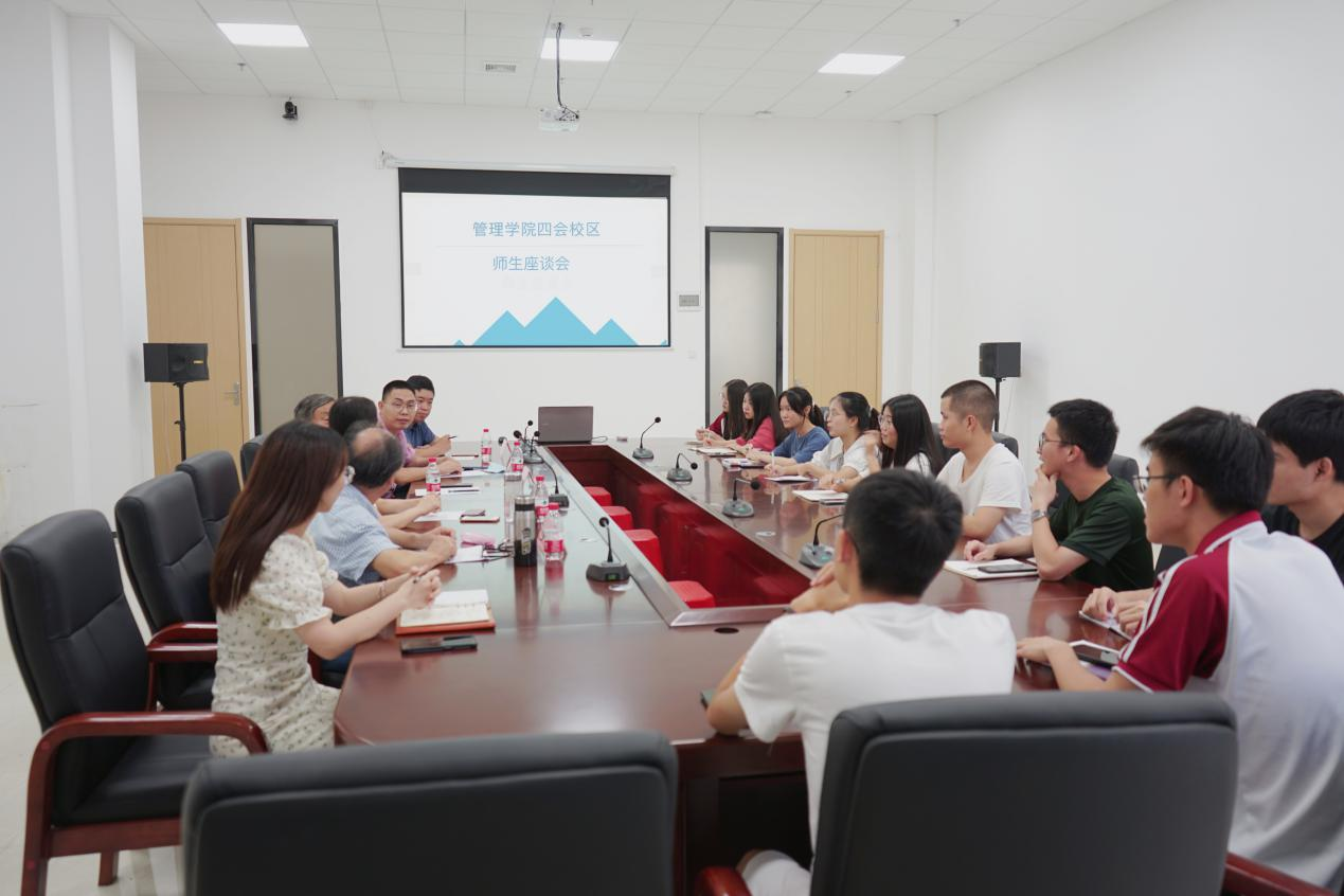为进一步推动“四会—增城”学生跨校区适应性工作,6月10日下午,管理学院在四会校区2号楼215会议室召开了师生面对面交流会。本次交流会由管理学院党委副书记、学工办主任陈纯华老师主持,管理学院院长李招忠教授、市场学系主任廖珍杰博士、公共管理系主任袁仕海副教授、管理学院严明副教授、辅导员魏巍老师以及21级学生代表参加了会议。