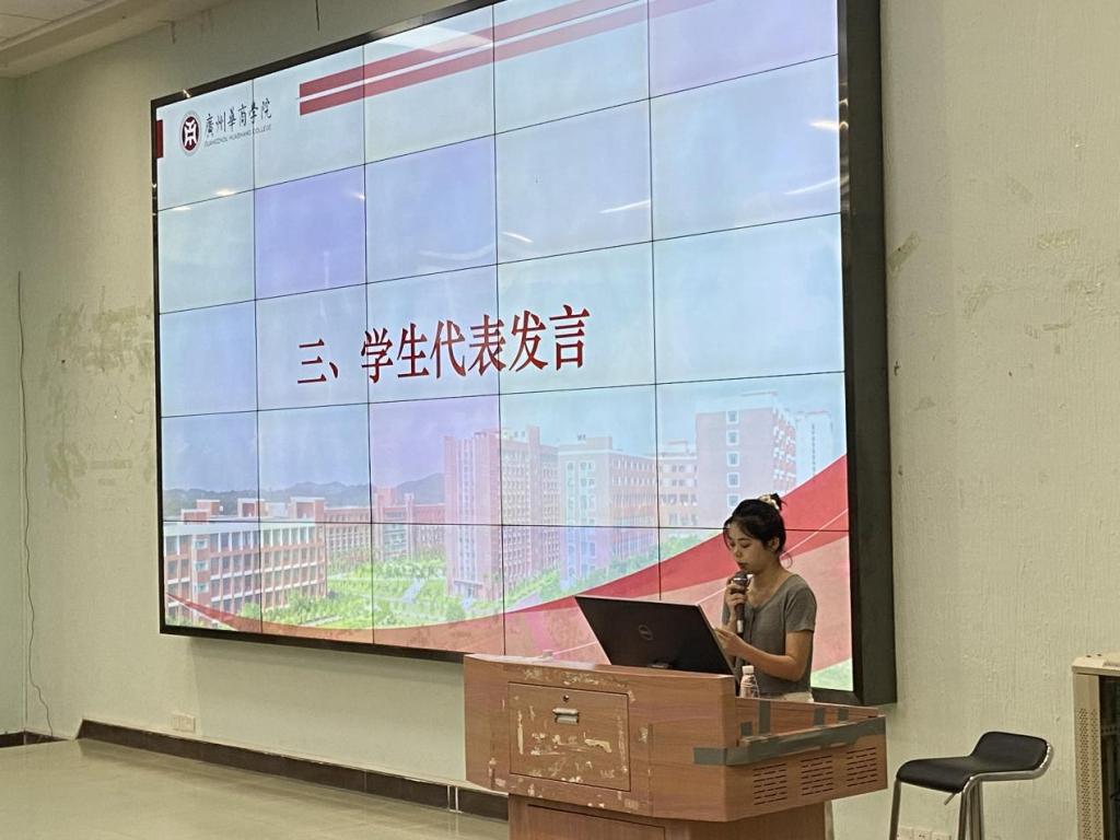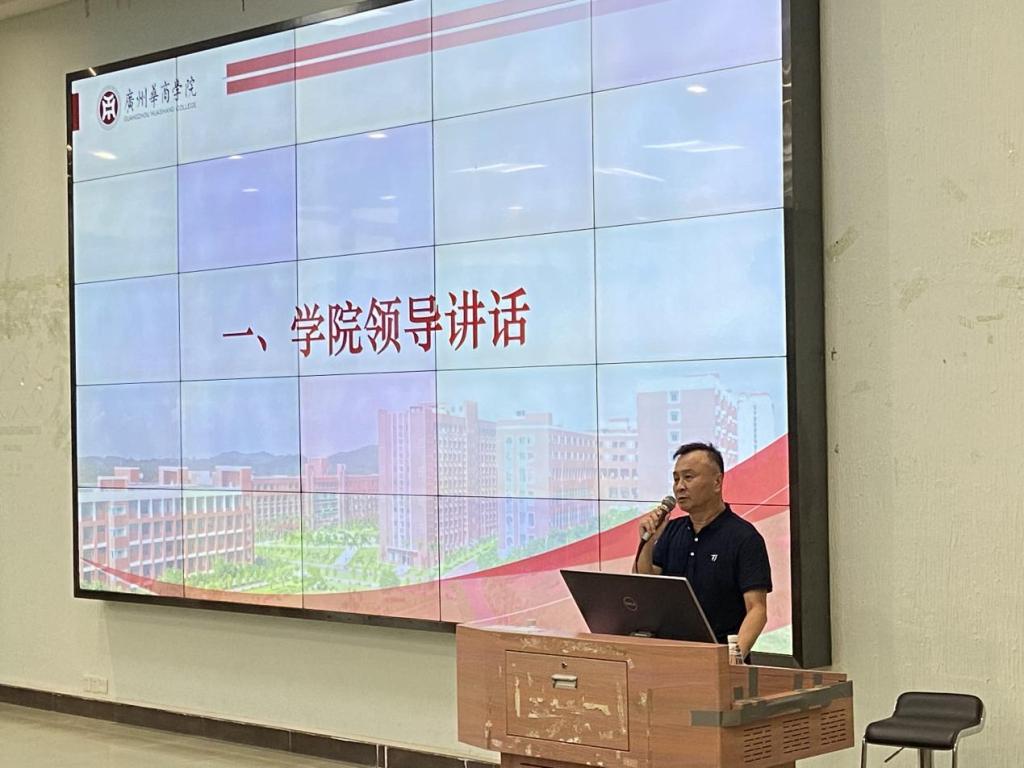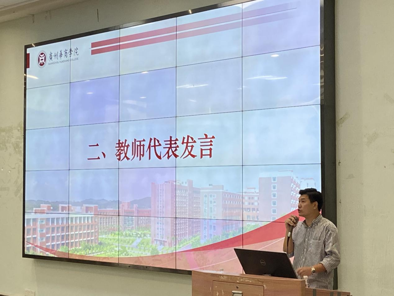 教师代表黄功翔老师发言,黄老师从文化底蕴、科研实力、教学情况等方面向专升本学生介绍了我校的基本情况,并以网红景点“庙前七街”的发展作为切入点,详细地介绍了学生所学专业的主要特色和优势。他希望专升本同学能够积极主动地与老师、同学多沟通、多交流,并且规划好接下来的大学生活。
