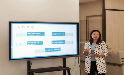 然后,2020级年级主任何剑萍老师从毕业生工作和迎新工作两个方面进行了讲解。关于毕业生工作,她给大家总结出了工作过程中会出现的问题以及提出了应对方法,并举例在开展2022届毕业生相关工作时的一些特殊情况,引导2023届毕业班辅导员要积极部署相关工作,进而提高工作效率。关于新生迎新工作,她对2022年专升本迎新工作进行了总结,并分享了她在迎新工作中出现问题时的应对方法。