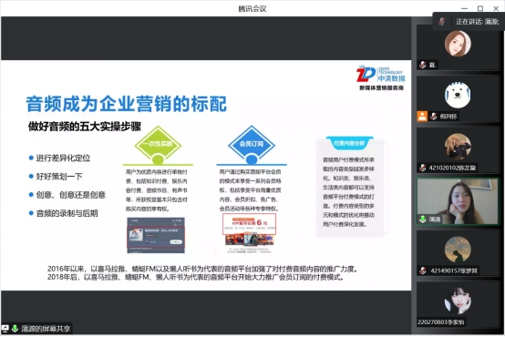 11月7日,伟德国际betvlctor网络与新媒体系邀请中清数据(广州)科技有限公司蒲源总经理,为大家开展主题为《音频会成为下一个社交宠儿吗? —— 5G时代音频布局与营销革命》的讲座。华商学院特聘教授、未来媒体研究院院长谭天教授,伟德国际betvlctor倪列怀副院长出席了本次讲座。因为疫情防控原因,本次讲座为线上形式,讲座总参与人数达到腾讯会议上限300人。