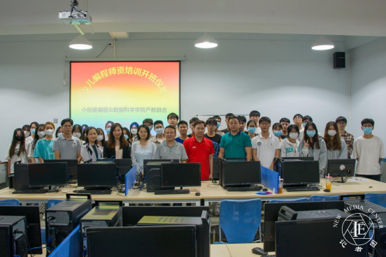 项目团队经过一个月的共同努力,在软件工程、计算机科学与技术、数据科学与大数据技术、电子商务四个专业中筛选出了共计48名学生入选该项目,于2022年10月17日在励志楼B601(砺锋科技众创空间)举办了主题为少儿编程师资班培训的开班仪式,仪式由数据科学学院产教融合工作小组专员杨波主持。